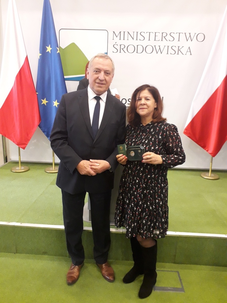 Wręczenie Pani Krystynie Raczyńskiej vel Wasiluk Medalu Ministra Środowiska za szczególne osiągnięcia w dziedzinie ochrony środowiska - 3.10.2019 r.