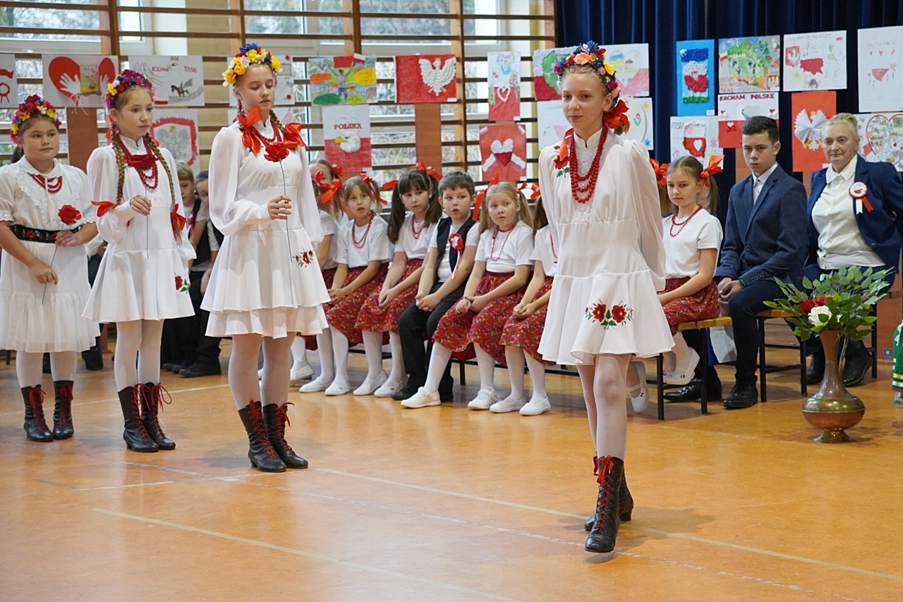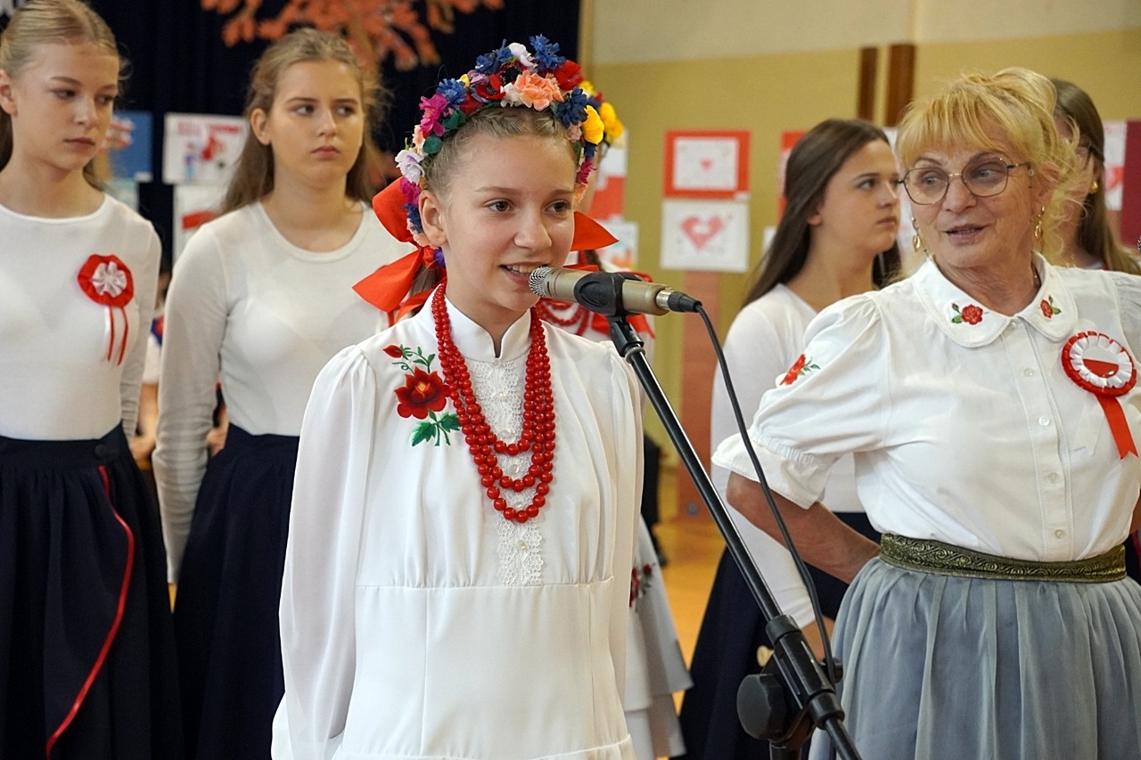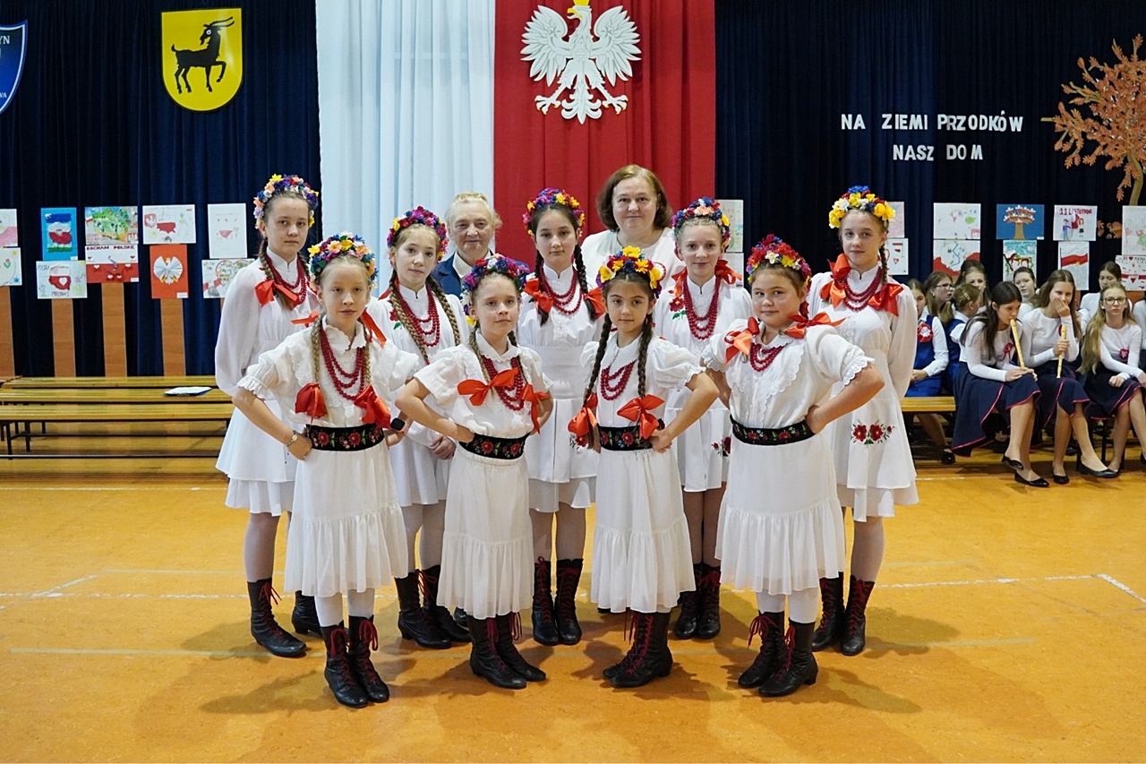 17 XI gościliśmy po raz kolejny już w szkole w Nowej Wilejce. Najpierw odbył się koncert z okazji Święta Niepodległości z udziałem chóru z tamtejszej szkoły i naszego zespołu. Widzami byli uczniowie i rodzice obydwu szkół i nauczyciele. Byliśmy pod wrażeniem pieśni polskich, jakie wykonał na wysokim poziomie artystycznym chór /dziewczęta w strojach ludowych, a chłopcy w mundurach harcerskich/. Patriotyczne nuty uzupełnił nasz zespół tańcami i poezją. Program był krótki, ale udany i wszystkim bardzo się podobał.